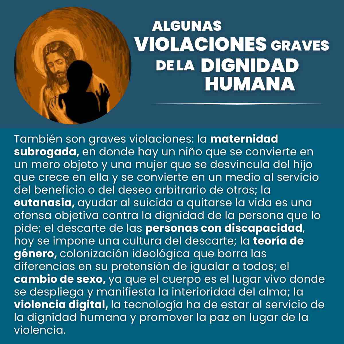 En este sentido, el Equipo de Comunicación Digital del Seminario Diocesano de Comodoro Rivadavia (Región Patagonia-Comahue) de la provincia de Chubut en la Argentina encontró en el diseño de 10 flyers una manera de resumir para el gran público de qué trata Dignitas Infinita.