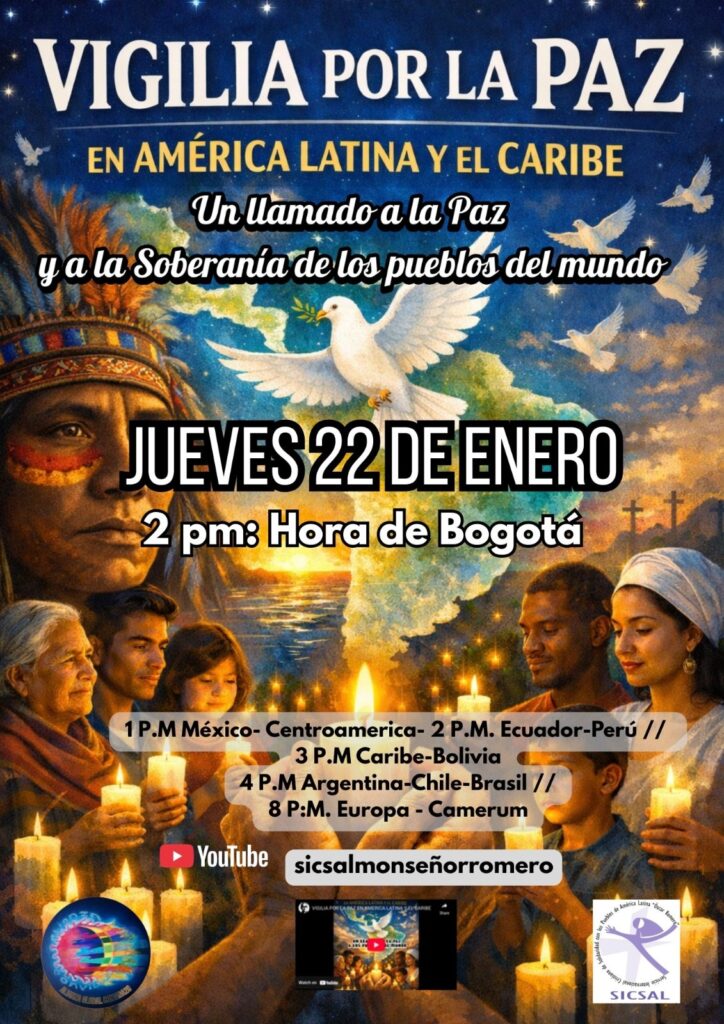 La vigilia-asamblea es organizada por la Red Justicia y Paz de la Patria Grande, el Servicio Internacional Cristiano de Solidaridad con los Pueblos de América Latina (SICSAL) y la Alianza Global CONVIDA20, y se realizará el jueves 22 de enero de 2026, a las 2:00 p.m. (hora de Bogotá), con participación internacional en distintos husos horarios.