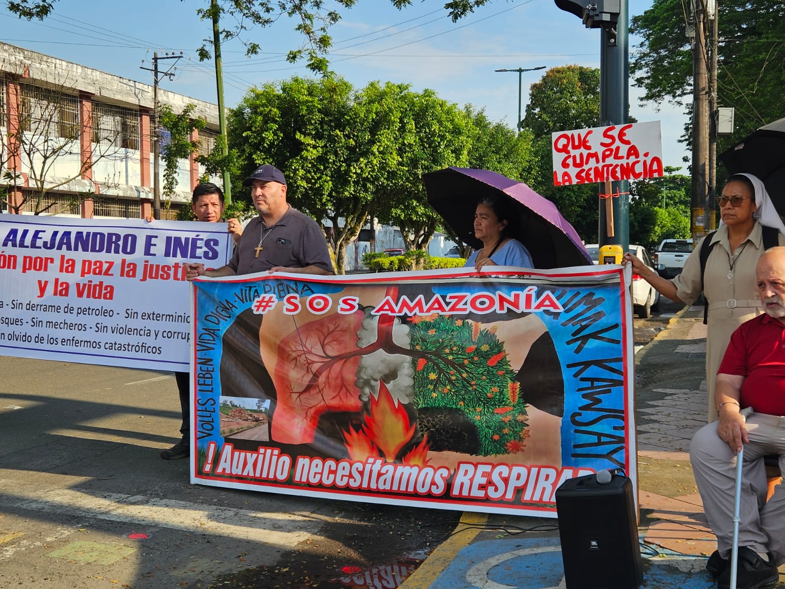 “Los lunes hacemos un plantón oración. Nos reunimos frente a la Fiscalía del Coca”, explicó el padre Azcona. La elección del lugar no es casual: “¿Y por qué la Fiscalía? Porque la Fiscalía es uno de los lugares donde más corrupción hay y donde muchísimas de las violaciones de derechos humanos no se hace absolutamente nada”.