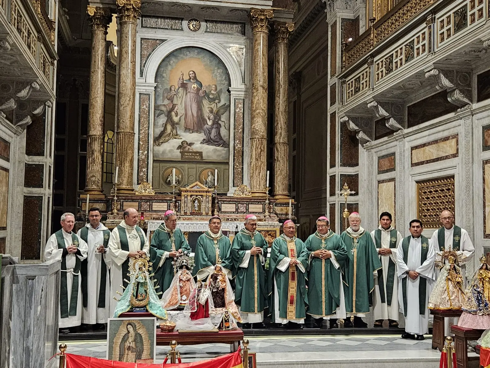 Durante la celebración, se presentaron imágenes de las principales advocaciones marianas: Virgen de Copacabana, Virgen de Urcupiña, Virgen de Chaguaya, Virgen de Cotoca, Virgen del Carmen y Virgen de la Merced. Al final, se compartió un ágape fraterno con las familias bolivianas, en un ambiente de oración y unidad. La bandera rojo, amarillo y verde estuvo presente como signo de identidad y esperanza.