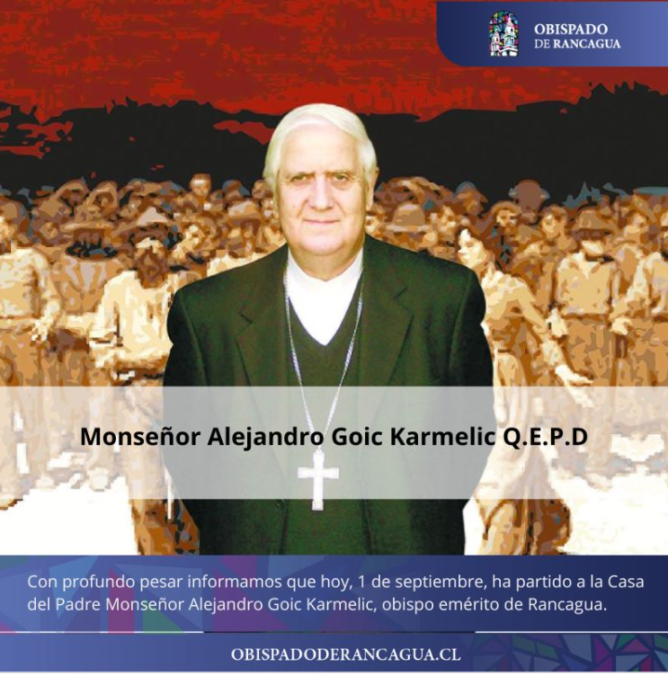 Este 1 de septiembre, la Conferencia Episcopal de Chile dio a conocer la partida a la Casa del Padre de monseñor Alejandro Goic Karmelic, obispo emérito de Rancagua, dejando un legado de entrega constante a la fe, la justicia y el acompañamiento de las comunidades. Internado desde el viernes 29 de agosto por complicaciones de salud, su partida fue acompañada de llamados a la oración y numerosos recuerdos de su labor pastoral.