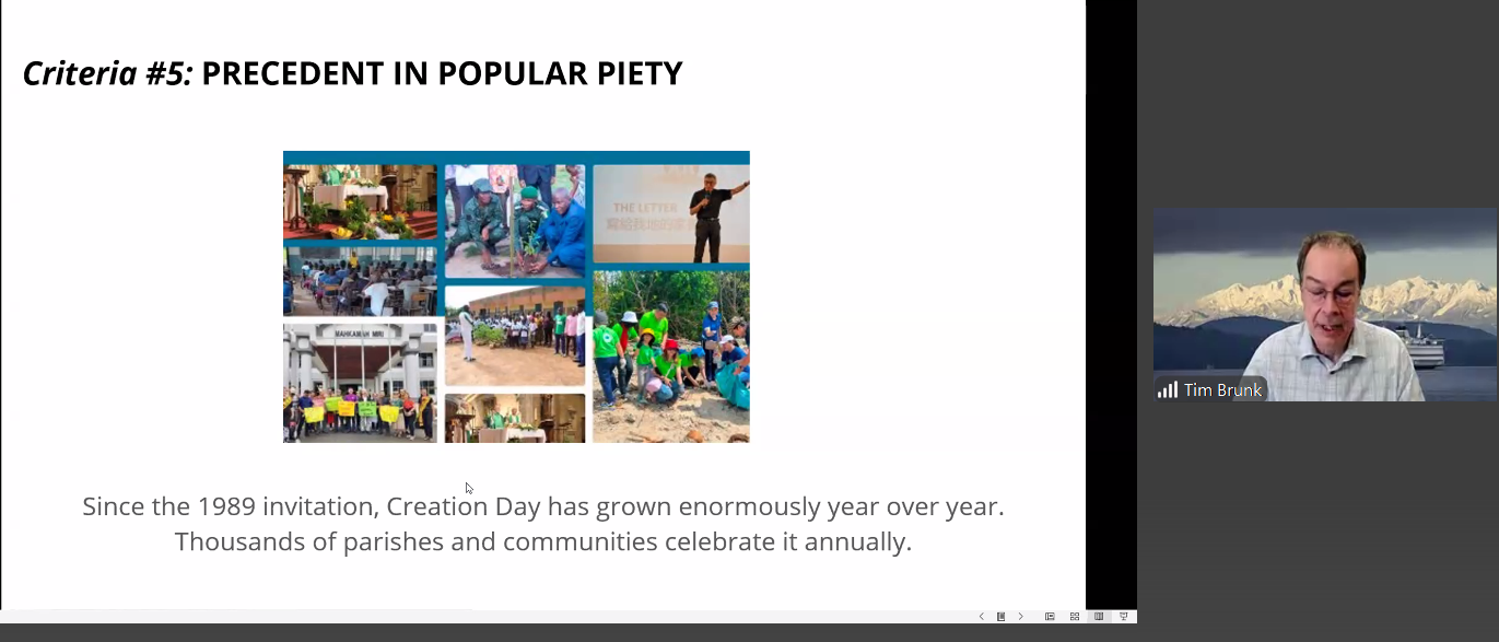 Brunk recalcó que el 1 de septiembre tiene un simbolismo litúrgico original, por ser primer día del año eclesial en las Iglesias bizantinas, que recuerda el mandato divino: “Hágase la luz”. También acentuó cómo en las últimas décadas la celebración ha ganado terreno en el ámbito católico y ecuménico, gracias al magisterio y a la creciente conciencia ambiental: “La apreciación cristiana de la creación debe incluir la dimensión de salvación completada en Cristo”.