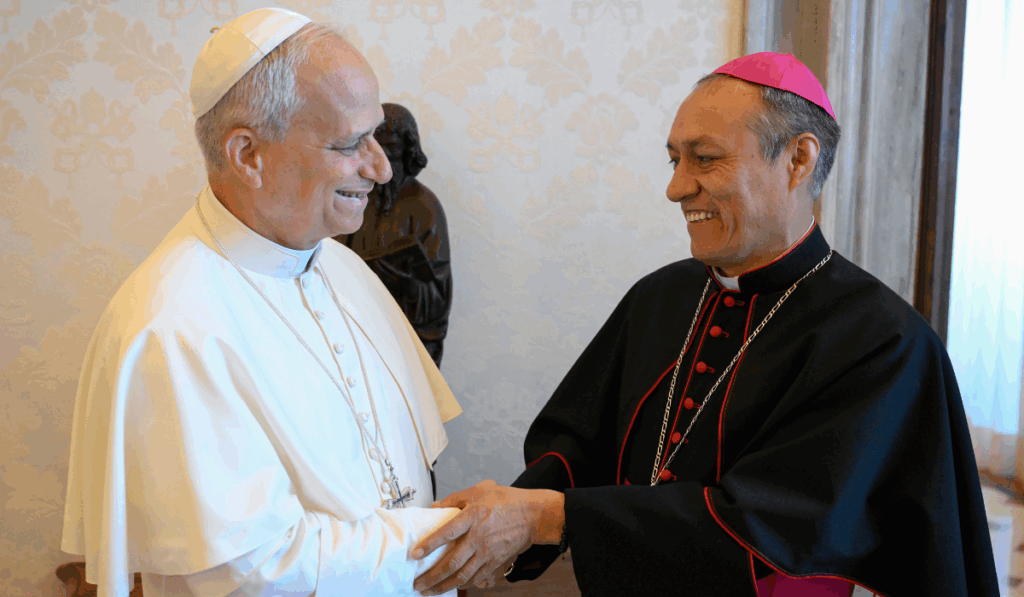 Monseñor Lizardo Estrada en audiencia en el papa León XIV