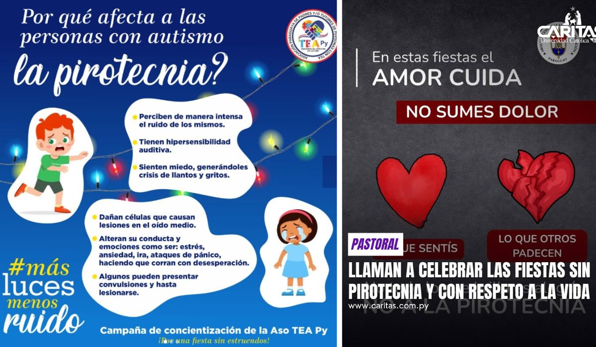Las celebraciones del fin de año, vuelven a generar en la Iglesia católica del Paraguay preocupación por el uso indiscriminado de la pirotecnia, generando impacto en la salud y la convivencia, de manera especial en niños que presentan trastorno del espectro autista (TEA), al respecto hacen un llamado a «que prevalezca el encuentro, el amor y el respeto por el prójimo».