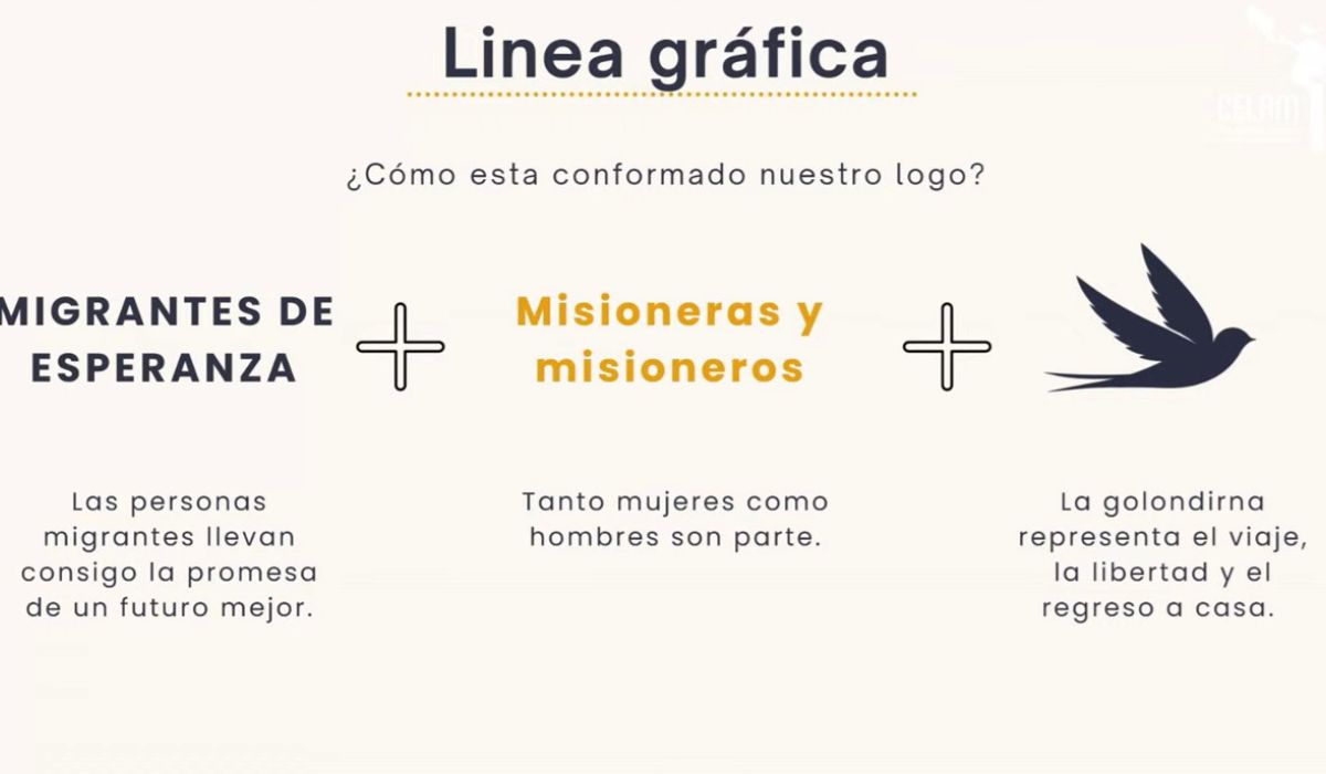 El diseño gráfico de la campaña se construye a partir de tres elementos esenciales: migrantes de esperanza, que son portadores de la promesa de un futuro mejor; misioneras y misioneros, destacando a hombres y mujeres llamados conjuntamente a esta misión de esperanza; y la golondrina, ave migratoria que simboliza el viaje, la libertad y el regreso a casa.