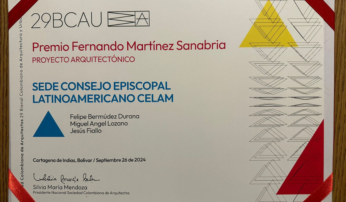 La sede del Consejo Episcopal Latinoamericano y Caribeño (Celam) fue galardonada con el premio bienal de arquitectura Fernando Martínez 2024, edición 29, organizado por la sociedad colombiana de arquitectura, en la categoría “proyecto arquitectónico”.