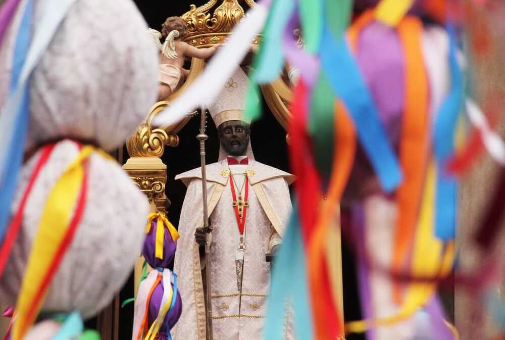 Desde la Iglesia Catedral sale San Nicolás de Bari, llevado en andas por los promesantes, el Alférez mayor, los dos guías, el obispo y la plana jerárquica de todas las Iglesias de la ciudad, quienes acompañan la imagen”.
