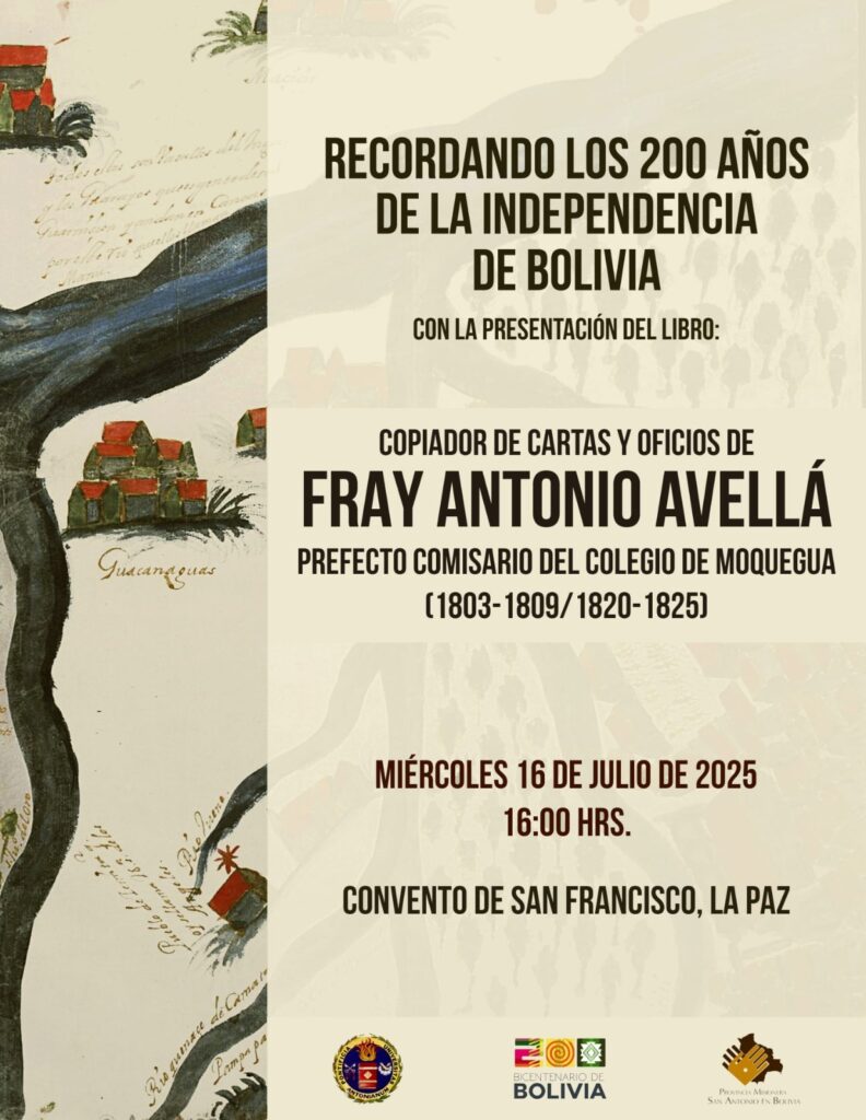 Conmemorando el Bicentenario de la Independencia de Bolivia, los franciscanos entregan al país un regalo para la memoria histórica y la investigación académica: la presentación del Libro copiador de cartas y oficios de Fray Antonio Avellá, Prefecto Comisario del Colegio de Moquegua (1803-1809/1820-1825).