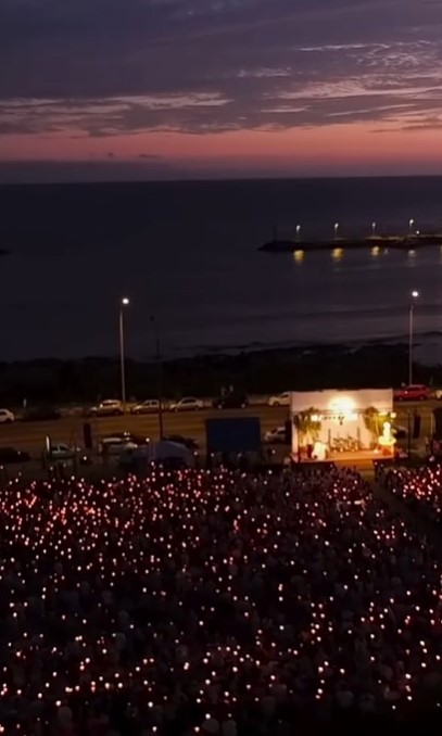 Las imágenes que comparten en su cuenta de Instagram dan una idea de la belleza del momento: el Río de la Plata que da marco desde una de sus bahías naturales sobre la que se apoya la Rambla Armenia, iluminada por la fe de los devotos.