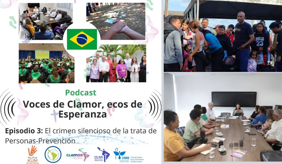 En un contexto donde la Trata de Personas sigue creciendo en la región, las voces se siguen escuchando desde las distintas regiones del Continente, es así como la tercera entrega de la serie de podcast “Voces de Clamor, ecos de Esperanza” estuvo dirigida por Claudia Pereira, integrante de la Comisión Episcopal Especial para el Enfrentamiento al Tráfico Humano (CEPEETH) de la Conferencia Nacional de Obispos de Brasil (CNBB). En esta ocasión, el episodio se enfocó en dar voz a quienes están en la primera línea de acción frente a la trata de personas, especialmente en las regiones fronterizas y amazónicas del país.
